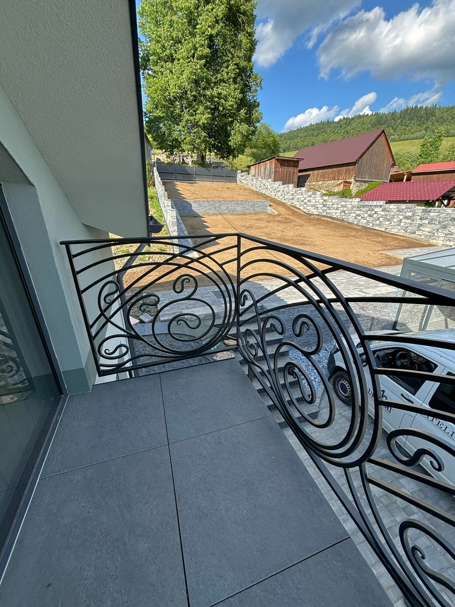 Modern balcony railing made according to the design by Ing. arch. Jozef Figlár