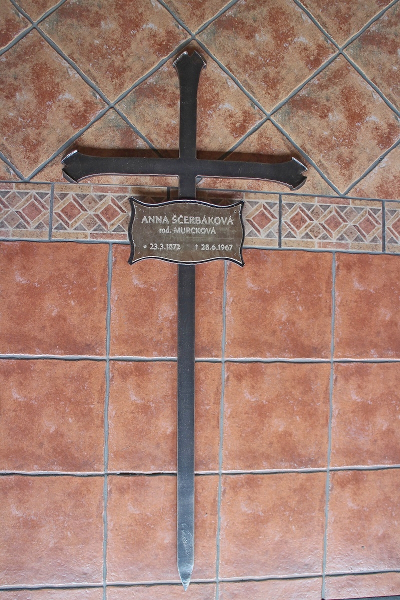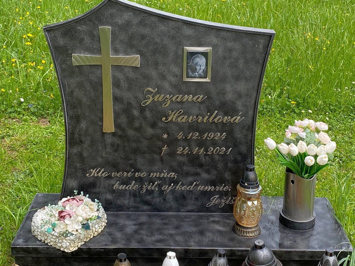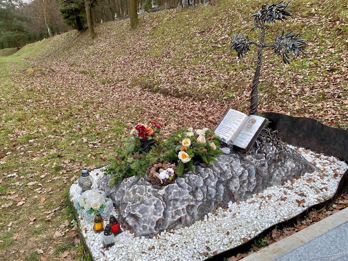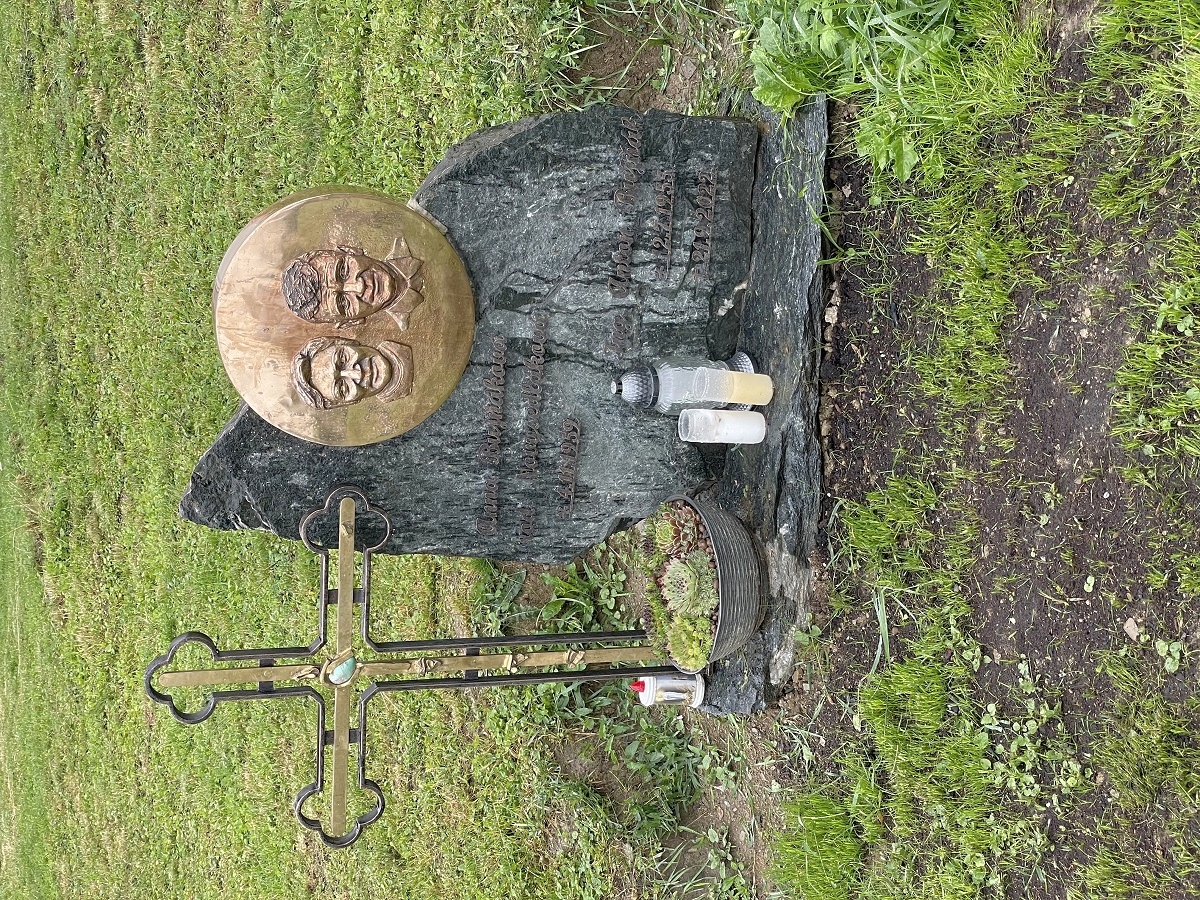Monument – Grabstein mit einem geschmiedeten Kreuz, Inschriften und Foto