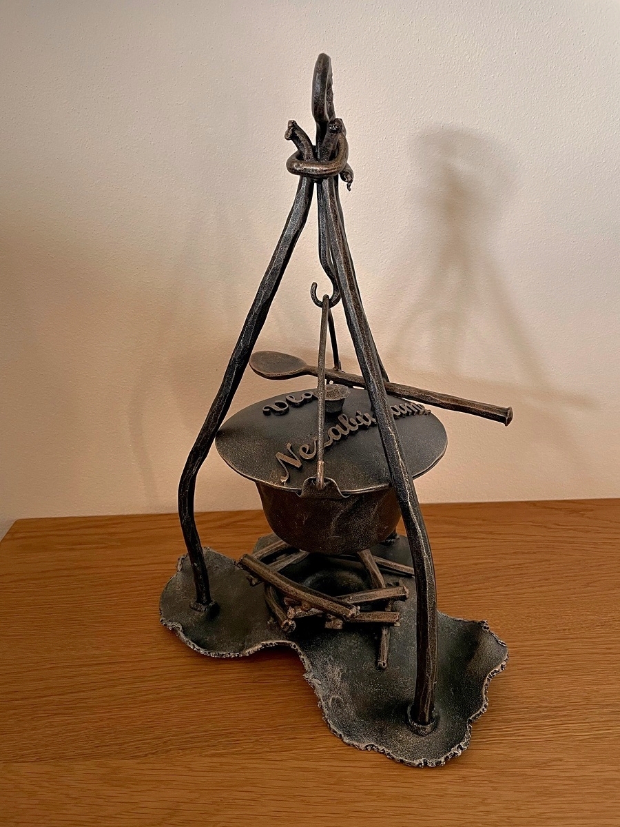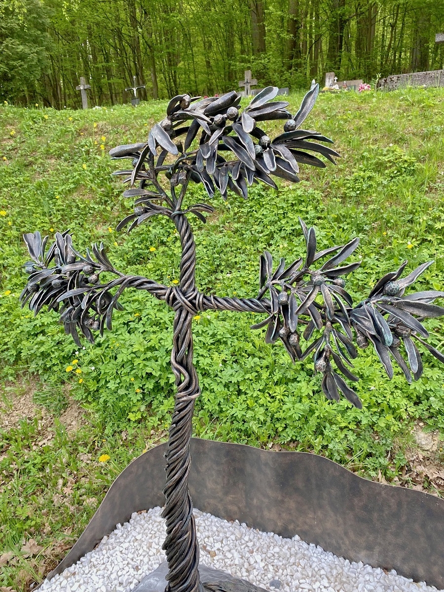 Ein außergewöhnliches Kreuz in Form eines Olivenbaums, handgeschmiedet als Symbol, das eine Geschichte darstellt