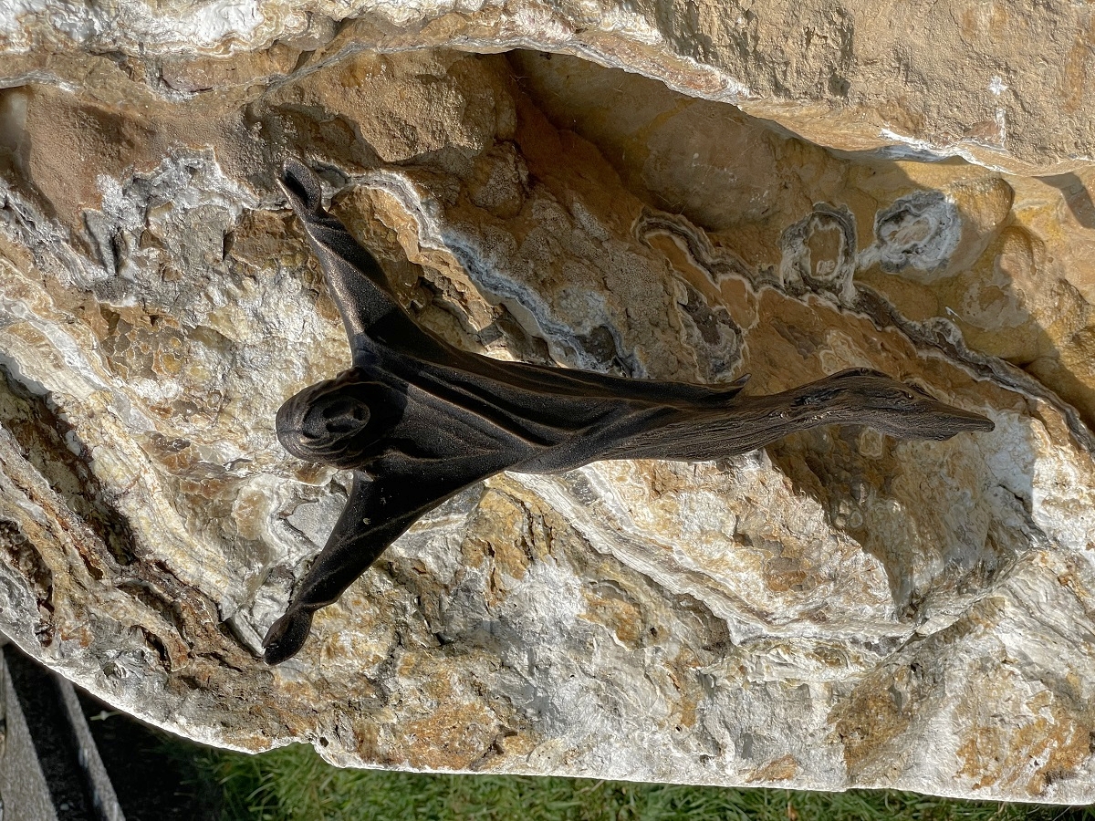 Denkmal – ein offenes Buch und ein Kreuz auf einem Felsen