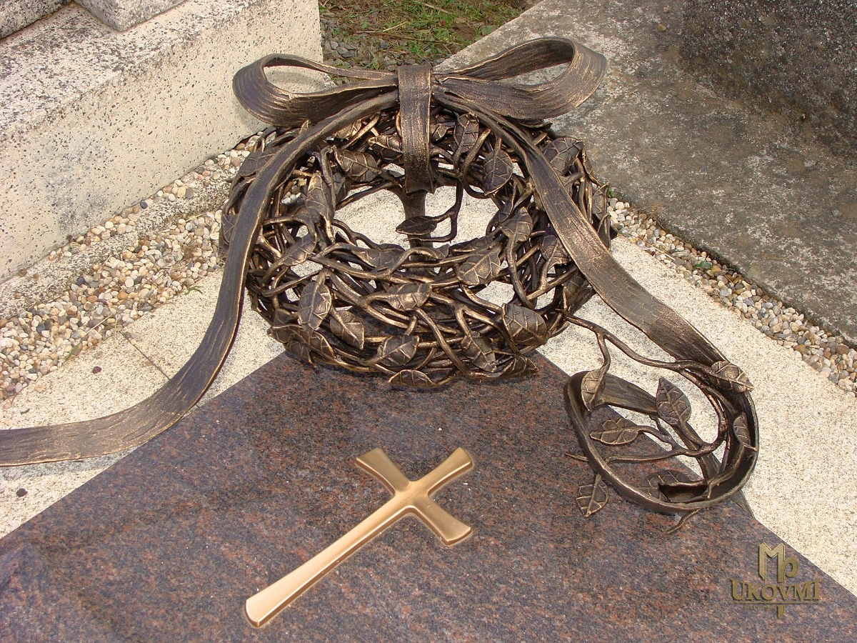 Denkmäler, Zubehör und Dekorationen für Denkmäler – handgeschmiedeter Kranz mit Schleife